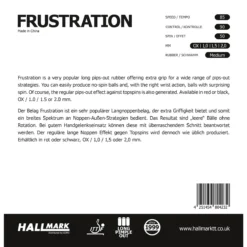Die Noppen sind einen Tick härter ausgelegt und die Noppenköpfe leicht geriffelt. Dadurch wird die Sicherheit in der langen Schnittabwehr garantiert und gleichzeitig die Gefährlichkeit bei Störbällen am Tisch erhöht, ohne die Kontrollwerte zu vernachlässigen.