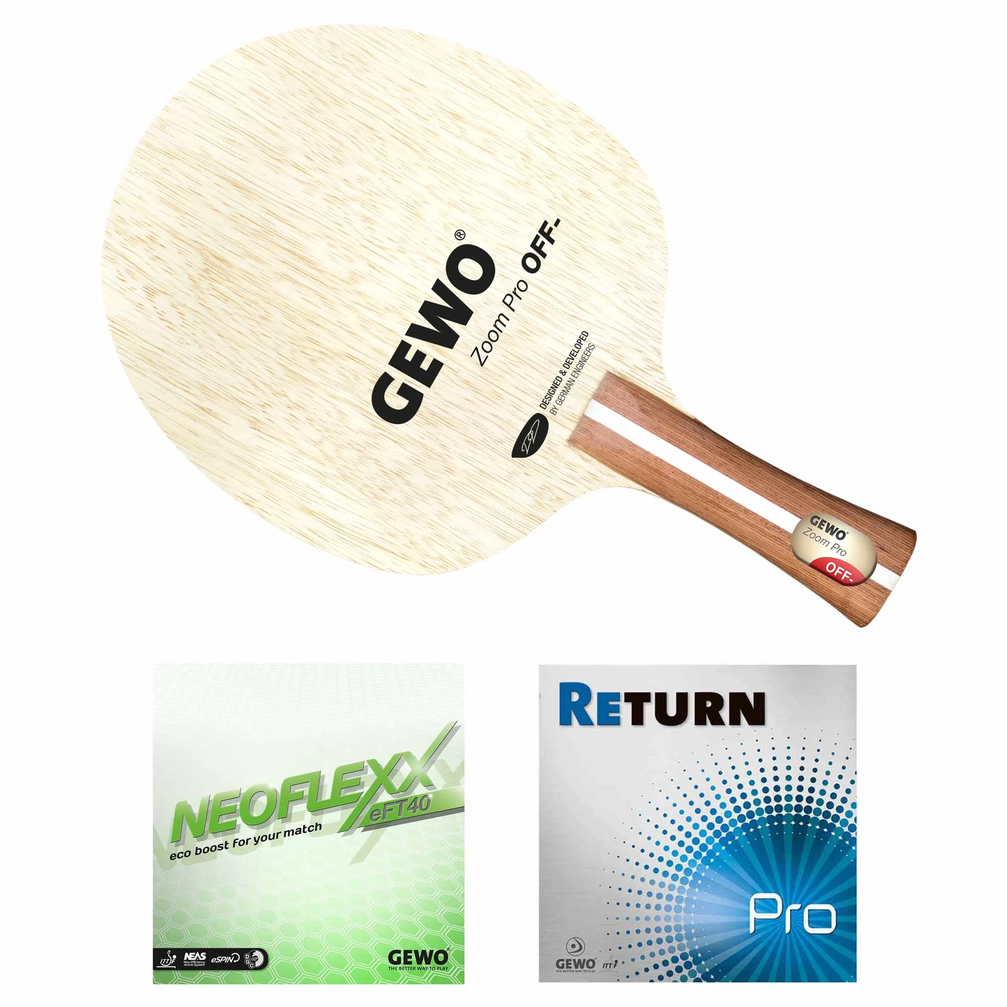 Das Zoom Pro ist sehr leicht zu spielen und bietet eine sehr gute Balance zwischen Tempo, Gefühl und Gewicht. Es spielt sich super variabel und eignet sich für alle Leistungsklassen. Es vergisst dabei jedoch nie die Wichtigkeit von Sicherheit und Flexibilität sowie ein unerreichtes Gefühl im Passivspiel. Beim Topspinschlag entwickelt das Zoom Pro eine Menge Tempo und ist dabei äußerst präzise und kontrolliert. Der Gewo Neoflexx eFT 40 ist ein Alleskönner: Für Spieler, die den optimalen Spagat zwischen den Vorzügen und der Kontrolle „klassischer Beläge“ und den Vorteilen Tensor basierter Hochleistungsbeläge bewältigen wollen.