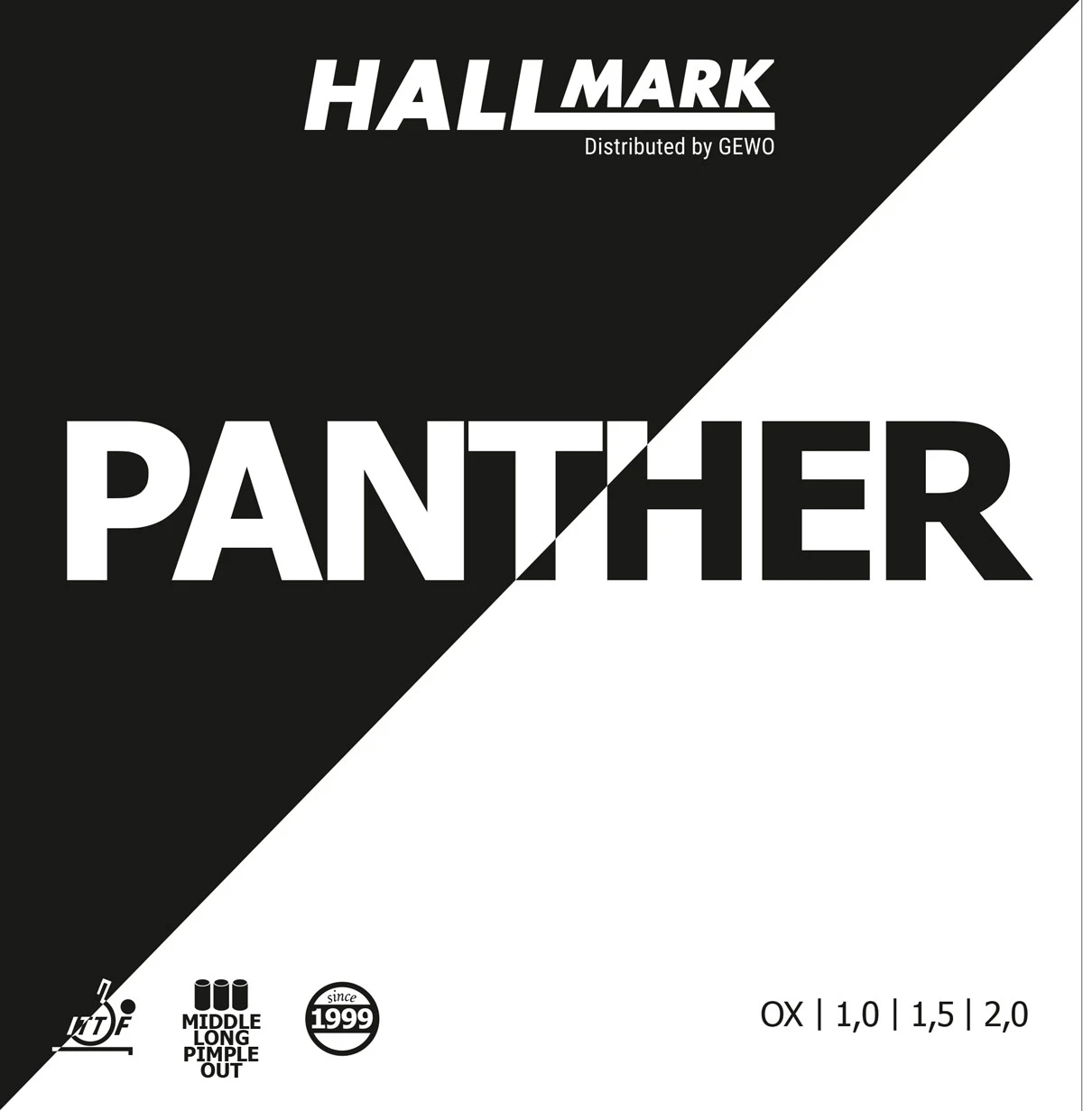 Der Panther kombiniert die Kontrolle des kurzen Noppenbelages mit dem Effekt von langen Noppen. Er bietet exzellente Kontrolle mit einem nach unten ziehendem Effekt, vor allem beim Blocken von Topspins. Die OX und 1,0 mm Version ist besonders für Abwehrspieler geeignet, die ihre Abwehr mit gefährlichen Angriffsschlägen kombinieren wollen.
